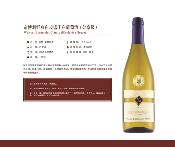 除了堅持釀造優質葡萄酒,帝博利還致力于德國葡萄酒文化的傳播與推廣,不斷讓世界其它國家及地區認識帝博利、認可德國葡萄酒釀造技藝及文化。在工業化釀酒大行其道的今天,帝博利仍堅持古法手工釀造葡萄酒,為了將這一技藝及精神更好的傳承下去,帝博利和世界各個國家及地區都建立了廣泛的國際交流與合作。酒莊目前與美國、英國、墨西哥、中國、意大利、法國等國家和地區建立了貿易合作關系。也正是與各國間的友好往來,帝博利得到了越來越多國家的認可。
